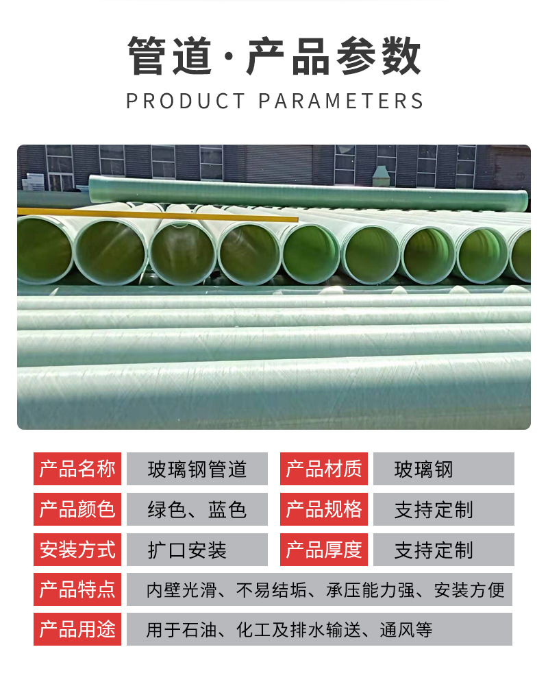 山東環通復合材料有限公司位于山東濰坊安丘市,成立于2011年,是從事玻璃鋼管道行業的生產廠家,玻璃鋼夾砂管道分為夾砂管和工藝管,規格型號為:50mm、100mm、150mm、200mm、250mm、300mm、400mm、500mm、600mm、80mm、1000mm、1200mm等,顏色主要為綠色、藍色、灰色等。公司產品主要分為:玻璃鋼管道:玻璃鋼夾砂管,玻璃鋼工藝管,玻璃鋼化糞池,玻璃鋼格柵,玻璃鋼保溫罩,玻璃鋼管件:玻璃鋼彎頭,玻璃鋼三通,玻璃鋼冷卻塔,玻璃鋼防腐等。